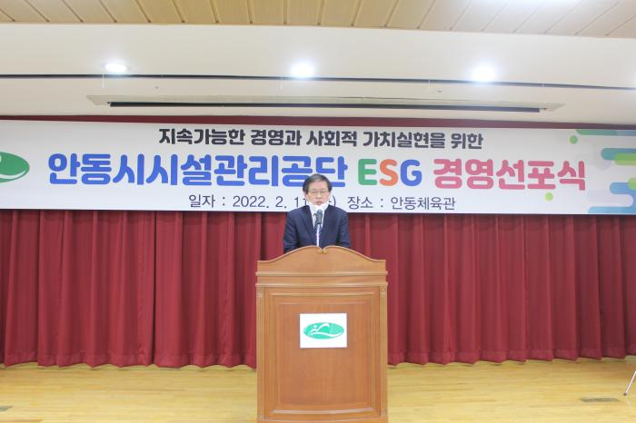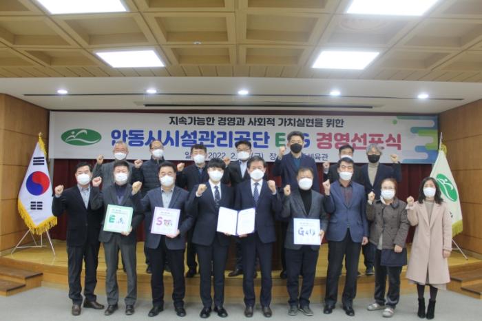 안동시시설관리공단은 지속가능한 경영과 사회적 가치 창출을 위한 ESG 경영 도입 선포식을 2월 11일 개최하고 새로운 경영 패러다임에 대한 실천의지를 천명했다.