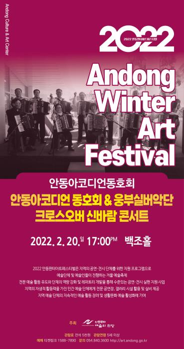 ‘2022년 안동윈터아트페스티벌’ 다섯 번째 공연 ‘안동아코디언동호회 & 웅부실버악단 크로스오버 신바람 콘서트’가 20일 오후 5시 안동문화예술의전당 백조홀에서 진행된다.