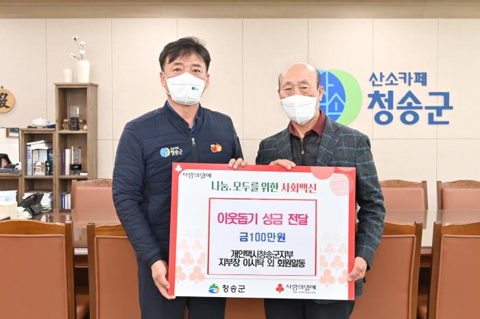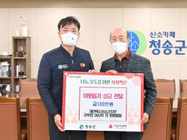 청송군 개인택시 청송군지부(지부장 이시탁)에서 지난 16일 청송군에 이웃돕기 성금 100만원을 전달했다.