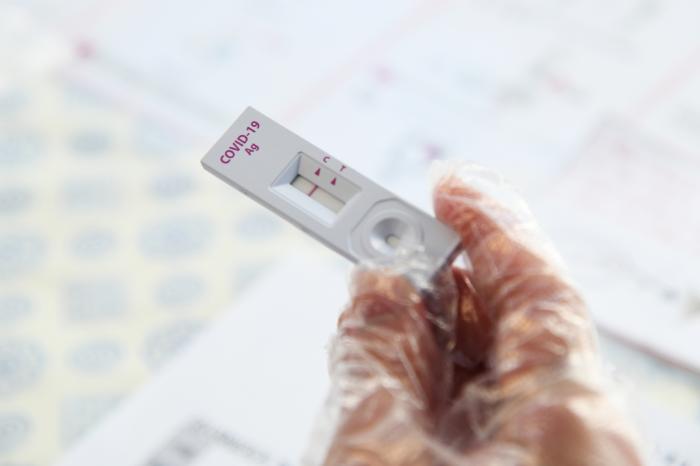 신속항원검사 결과 확인하는 모습