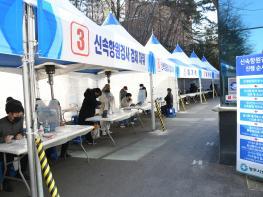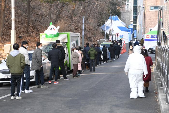 설 연휴 마지막날 신속항원검사를 받기위해 줄 선 시민들