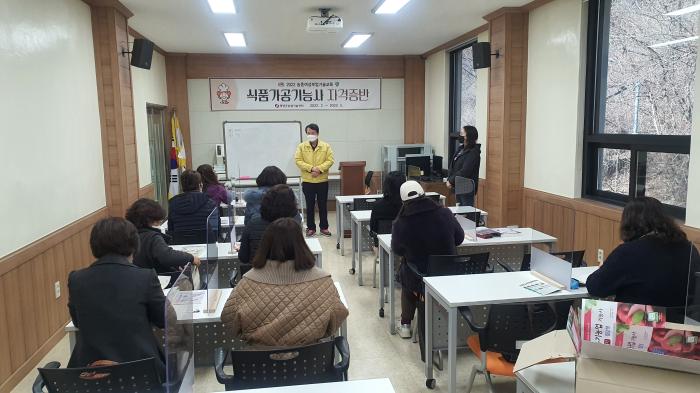 식품가공기능사는 농·축·수산 식품가공 산업 현장에서 제조·가공 업무를 담당할 기능 인력을 양성하기 위해 한국산업인력공단에서 시행하는 국가기술 자격으로 관내 농업인의 식품가공 역량 강화를 위해 진행한다.