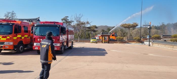 영양군 문화시설사업소는 2월 22일(화) 오후 2시 장계향문화체험교육원에서 화재발생시 교육원 체험객 인명보호, 화재에 취약한 목조 건물 보존 및 훼손을 최소화하기 위한 ‘장계향문화체험교육원&입암119안전센터 소방합동훈련’을 실시했다.