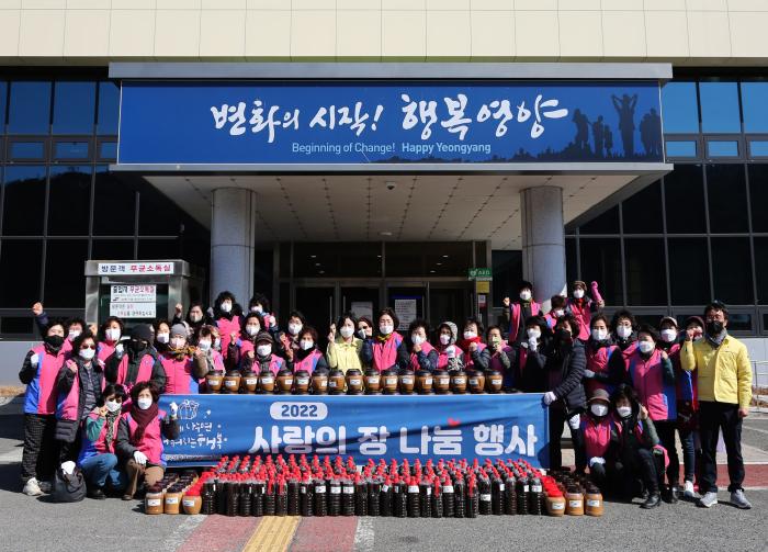 한국생활개선영양군연합회는 2월 22일 농업기술센터에서관내 취약 계층에 지원할 사랑의 “장 나눔 및 장 담그기”행사를 진행했다.