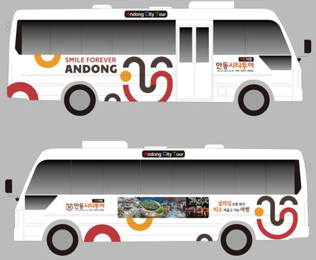 시티투어 전용 버스는 안동 관광브랜드인 ‘SMILE FOREVER ANDONG’을 주제로 하회탈 특유의 친근하고 익살스러운 이미지로 새단장하여 관광객의 또 다른 사진 맛집이 될 것으로 기대된다.