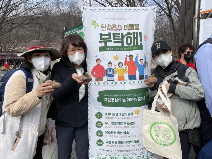 탄소흡수 식물 화분 인증 및 탄소중립 실천 이벤트 우수 참여자는 오는 7월 국립공원 무료 생태체험 기회와 기념품 제공 등의 혜택이 주어질 예정이다.