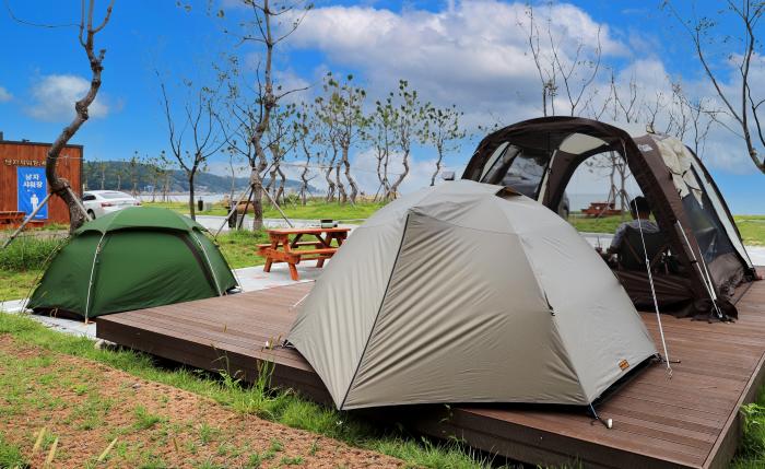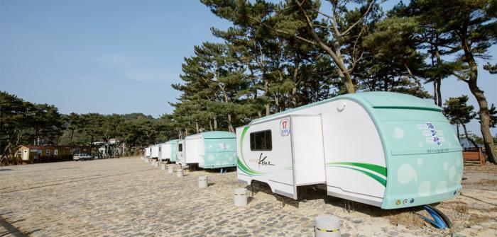 여기는 17만5000㎡의 넓은 면적에 솔숲텐트 110동, 오토캠핑 13동, 카라반 25동 등 야영장 148동, 조형전망대, 해안루, 해안산책로, 편의시설(샤워장·취사장·화장실)을 갖추고 있다.