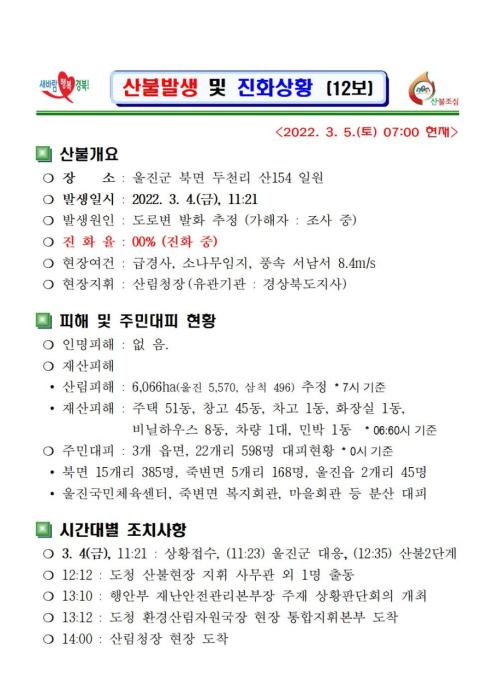 소방당국, 10년 만에 최대규모,,, 현재 울진 산불 남하(죽변면·울진읍 일부 영향권)