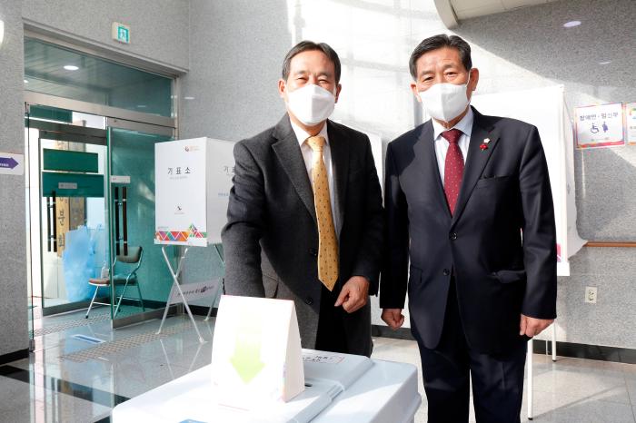 상주시의회 정재현 의장과 임부기 부의장은 제20대 대통령선거 사전투표 첫날인 4일 오전9시 남원