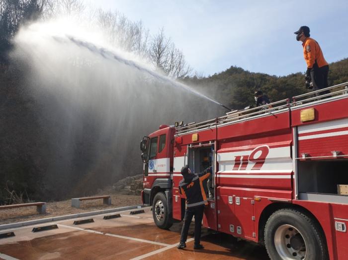안동소방서는 연일 지속되고 있는 건조한 날씨 대형 산불을 예방하고자 산림인접 민가, 문화재, 주요시설 등 주변 지역에 선제적 예비주수를 시행하고 있다고 전했다.