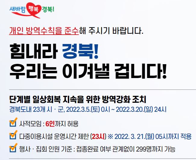 경상북도에서는 최근 1주일간 국내 5만8469명(해외유입 제외)이 발생해, 주간 일일평균 8352.7명이다.(업무부서/감염병관리과 054-880-3868)