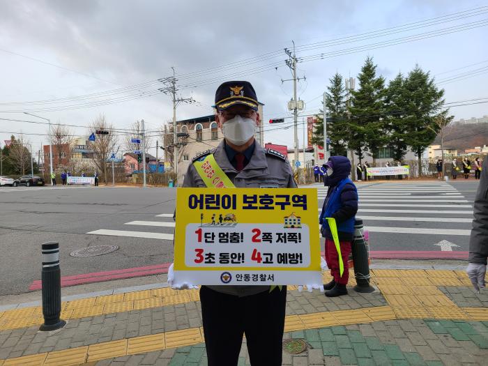 (안동112=경북온뉴스) 김승진 기자 = 장근호 안동경찰서장은 2021.3.16. 행정안전부에서 주관하는 ‘어린이 교통안전 릴레이 챌린지’에 동참했다.