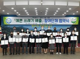 이날 주요 협약 사항은 △올바른 생활쓰레기 배출문화 조성 및 확산 지원 △생활쓰레기‧재활용품 배출기준 준수 △1회용품 사용 자제 △쓰담걷기 캠페인 동참 등 쓰레기 배출문화 확산 및 정착이 목적이다.