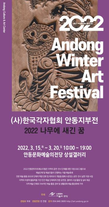 2022년 안동윈터아트페스티벌 전시부문 마지막 단체로 (사)한국각자협회 안동지부의 ‘2022 나무에 새긴 꿈’이 15일 ~ 20일까지 안동문화예술의전당 상설갤러리에서 열린다.