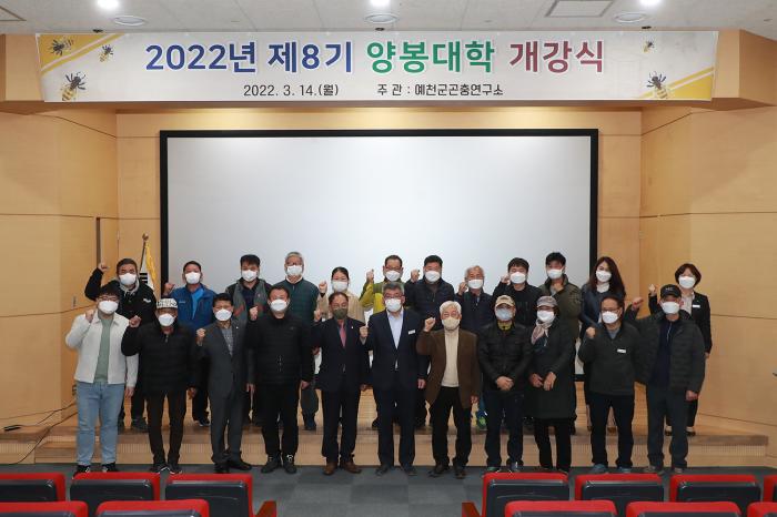 예천군은 14일 오후 1시 30분 예천군곤충연구소 곤충생태체험관 1층 영상관에서 양봉전문가 양성을 위한 '양봉대학 개강식'을 개최했다.