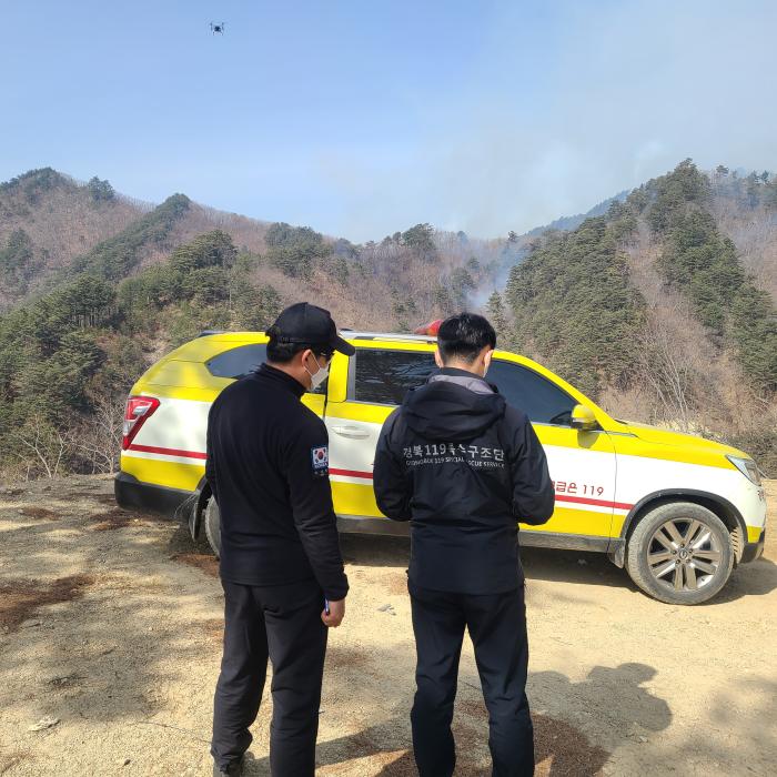119특수구조단은 열화상 카메라가가 부착된 드론을 활용, 불길 방향을 미리 예측해 인명대피 유도 및 재산피해를 최소화하고, 화마가 휩쓸고 간 산림 속에 남아있는 잔불을 확인해 신속히 제거함으로써 진압작전에 효율을 더했다.