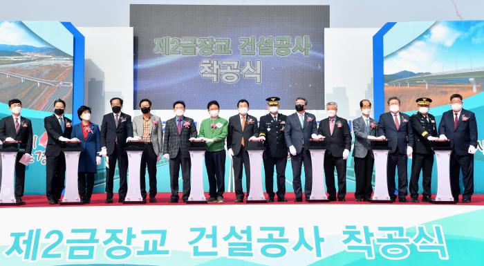 이날 착공식에는 김석기 국회의원, 주낙영 경주시장, 지역 도의원, 시의원 등 주민 90여명이 제2금장교의 착공을 축하했다.