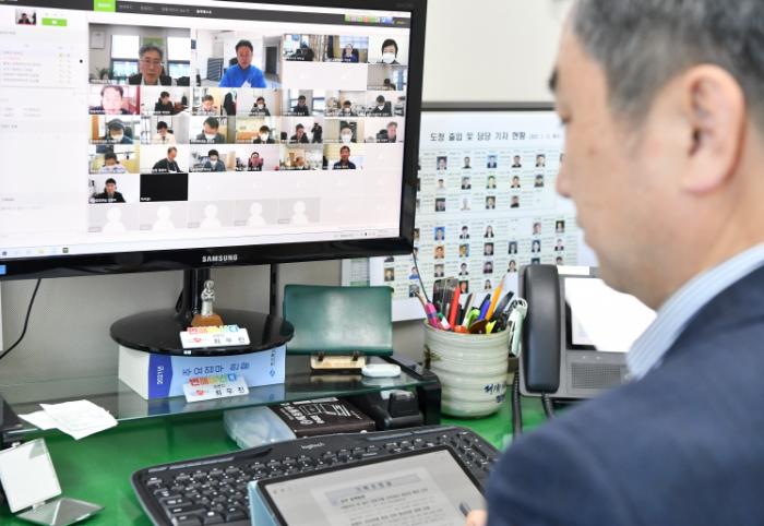 이철우 경북도지사는 15일 오전 자택 컴퓨터를 활용해 비대면 간부회의를 진행하며 재택근무 중에도 긴급 현안사항들을 직접 챙겼다.