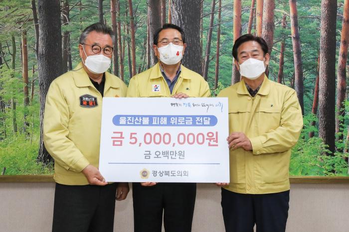 경상북도의회(의장 고우현)가 3월 17일 울진 산불 피해 이웃돕기 의연금 500만원을 전달하며 따뜻한 기부행렬에 동참했다.
