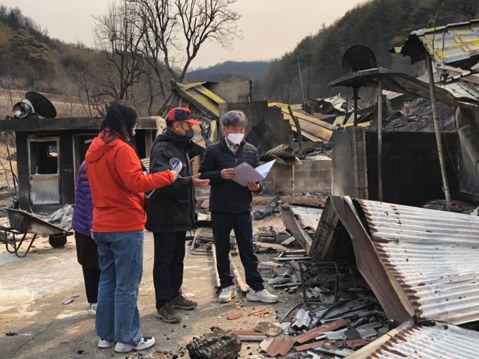 산불 발생 직후부터 경북도와 울진군은 긴밀한 공조체계를 구성해 피해조사를 진행했고, 조사결과를 국가재난관리시스템(NDMS) 입력 및 신축․재축 방법 등 관련규정 자문을 위해 도청 건축직 공무원을 산불피해 현장에 상주시켰다.