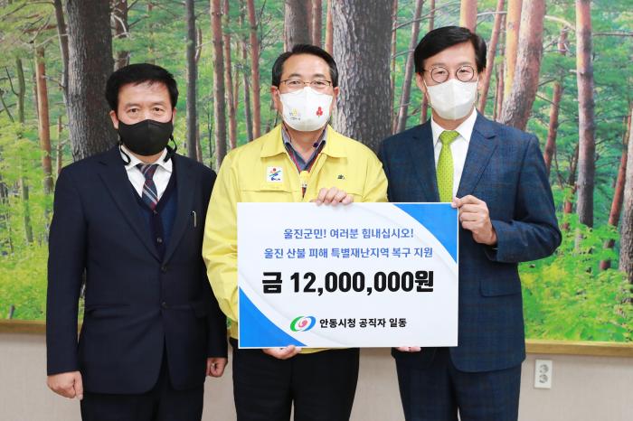 안동시는 지난 4일부터 열흘 간 지속된 산불로 피해가 심각한 울진군을 방문하여 1,200만 원의 성금을 18일 전달했다.