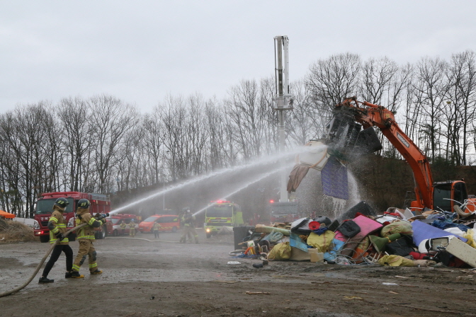 소방훈련은 안동소방서 17명, 안동시 광역매립장 관계자 25명, 소방차량 5대, 굴삭기 및 로더 2대가 동원된 가운데 ▲소화기 및 비상소화장치 등 활용 관계자 초기 화재진압 ▲소방차량 및 굴삭기 활용 화재진압 ▲화재 위험요소 점검 ▲관계자 소방안전교육 추진 등의 내용으로 추진됐다.