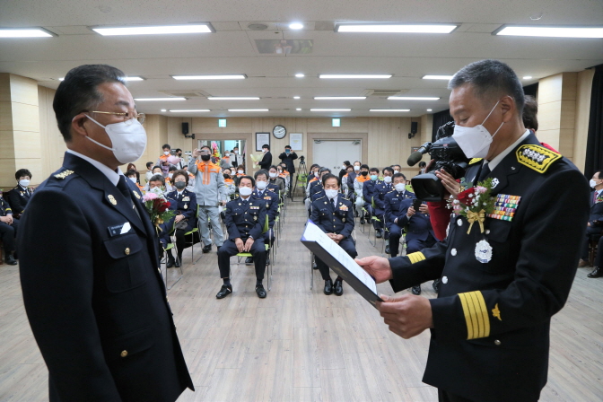안동소방서는 24일 11시경 안동소방서 3층 대회의실에서 안동시 남성의용소방대 연합회장 이·취임식 행사를 가졌다.