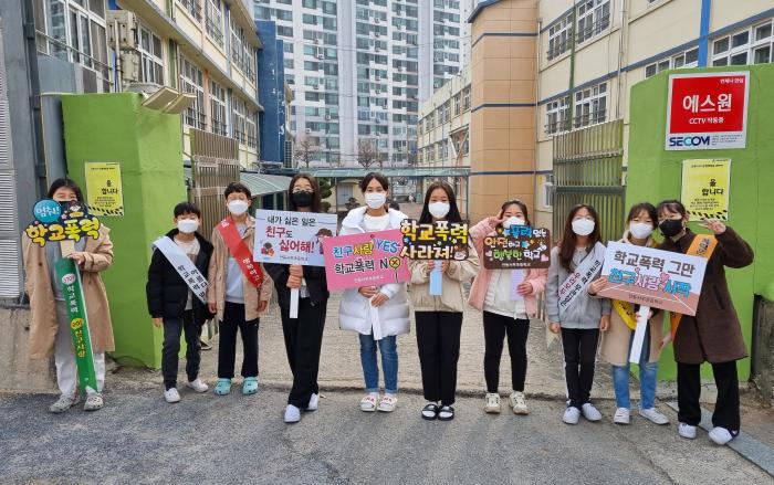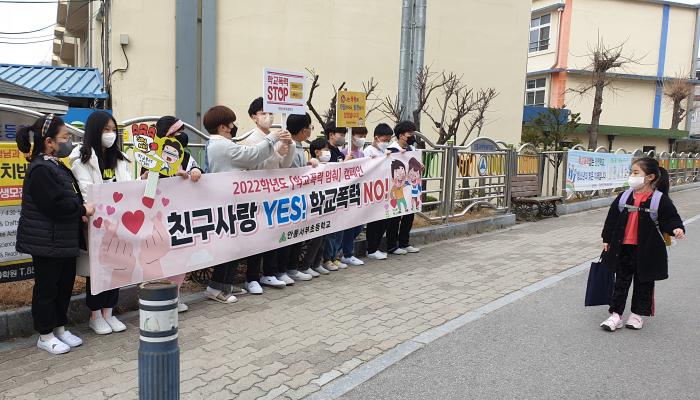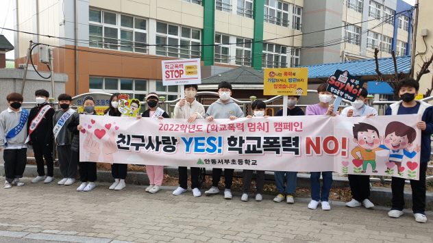 안동시 안동서부초등학교는 학교폭력 예방 교육 주간을 맞아 3월 25일(금) 2022학년도 학교폭력 예방 캠페인을 실시했다.