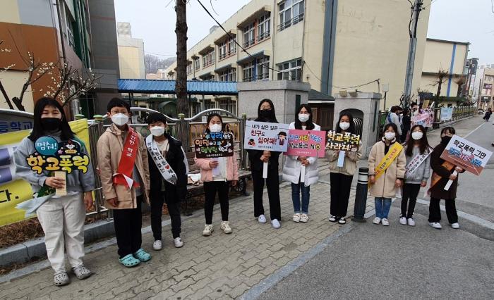 전교학생회 회장 6학년 한○○ 학생은 “폭력은 한순간이지만 상처는 영원히 남는다고 한다. 우리가 무심코 한 말이나 행동으로 친구들에게 상처를 줄 수 있음을 항상 기억하고 모두가 행복한 학교를 만드는 데 함께 노력하면 좋겠다.”라고 소감을 말했다.