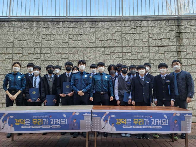 안동경찰서(서장 김준식)는 신학기 초 학교폭력 근절 분위기를 주도적으로 이끌어 가기 위해 3월 22일 경덕중학교에서 3학년 재학생들과 함께 자치순찰대 발대식을 가졌다.