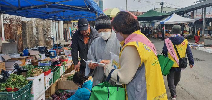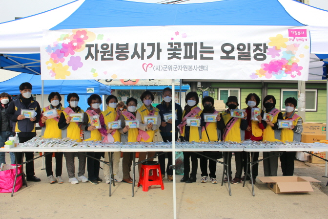 (사)군위군자원봉사센터(센터장 장근종)는 지난 25일 의흥면 전통시장에서 ‘자원봉사가 꽃피는 오일장’행사를 진행하였다. 이날 행사는 오미크론 확산세에 따라 ‘안전한 장터 만들기’라는 주제로 군위읍 전통시장에 이어 의흥면 전통시장 일원에서 생활방역키트를 배부하고 개인생활방역을 권장하는 캠페인을 진행했다.