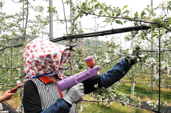 최근 봄철 저온 등 기상변화가 잦아 꿀벌 등 화분 매개 곤충의 활동이 저조해 꽃가루의 수분·수정이 불량해 질 수 있는 상황에서 결실량 확보와 고품질 과일 생산을 위해서는 적극적인 인공수분이 필요하다.