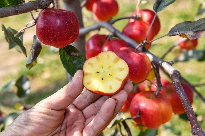 영주 별사과를 반으로 쪼개면 별모양이 더 선명하다