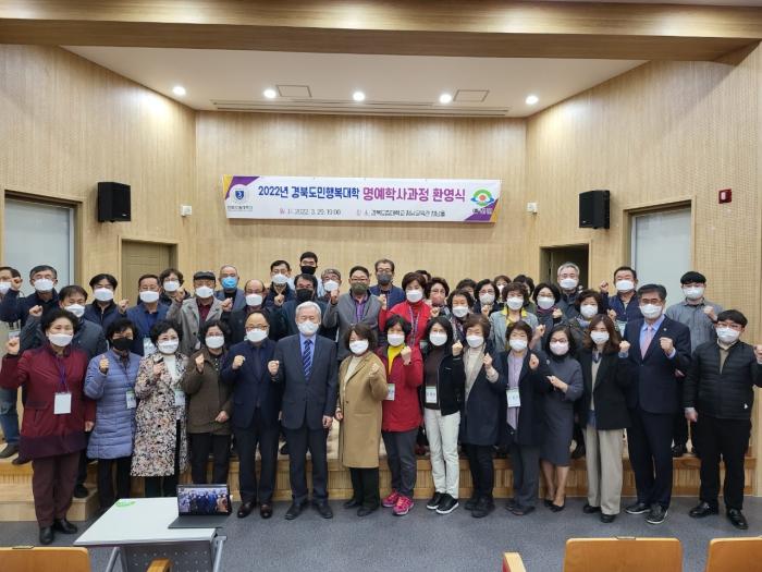 예천군은 지난 29일 경북도립대학교(총장 김상동) 청남교육관 청남홀에서 수강생 50여명이 참석한 가운데 ‘2022년 경북도민행복대학 예천캠퍼스 명예학사과정’을 개강했다.