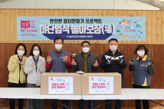 안전한 장터 만들기라는 주제로 군위읍 5일장을 방문한 관내 주민들을 대상으로 마스크를 배부하며 생활방역 권장 캠페인을 진행했다. 이와 더불어 코로나로 인하여 힘들어하는 상가에 응원키트 및 마스크 착용 안내 포스터를 배부‧부착하는 자원봉사활동을 진행했고 군위시장 상인회(회장 임승도)에도 코로나응원키트를 전달했다.