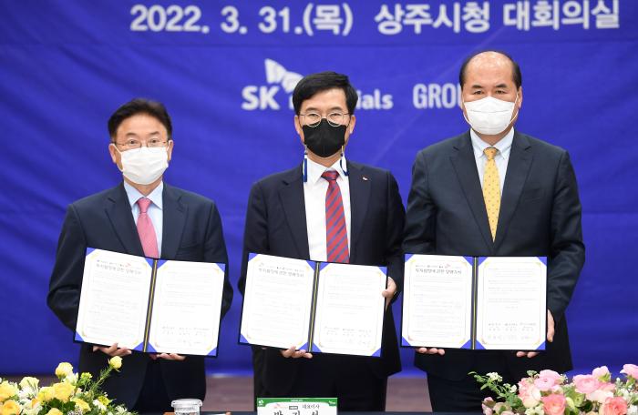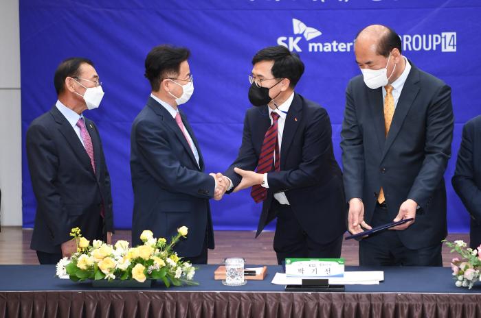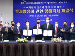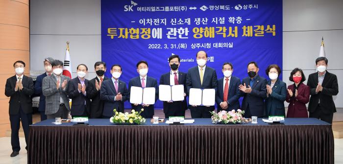 경북도와 상주시는 31일 상주시청 대회의실에서 SK머티리얼즈그룹포틴(‘이하 SKMG14’)의 이차전지 실리콘 음극재 생산공장 증설 투자에 대한 양해각서(MOU)를 체결했다.
