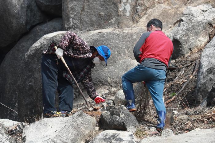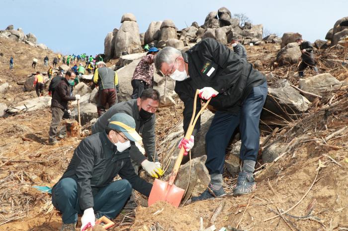 한편, 군은 지난해 산불피해를 입은 감천면 유리 일대는 복구를 위한 벌채사업을 완료했으며 올해 50ha 임야에 편백, 산벚나무 등 약 75,000본을 식재해 조속한 복원을 목표로 봄철 산불피해복구 조림사업을 추진하고 있다. (업무부서/ 산림경영팀)