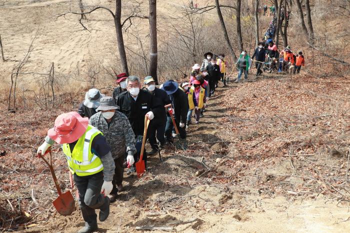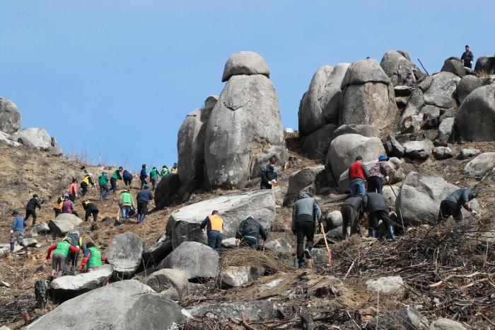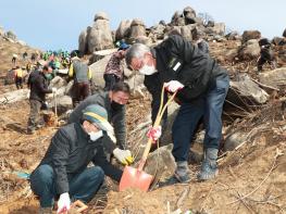 이날 참여자들은 마을의 자랑인 달바위 주변 경관이 아름답게 가꿔질 수 있도록 개나리, 영산홍, 자산홍 등 꽃나무 총 11,000본을 식재했다.