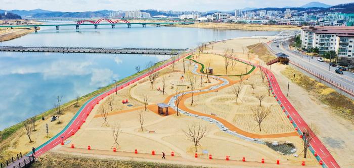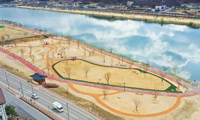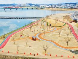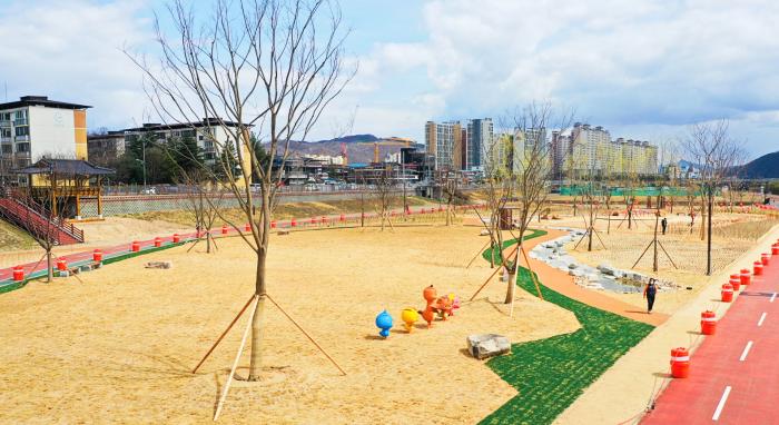 시는 용상동 강변 둔치 약 9,649㎡ 내에 총 사업비 8억7천만 원을 들여 지난해 4월부터 공원 조성 공사를 진행하여, 올해 3월 말 완료했다.