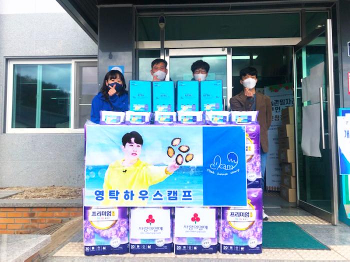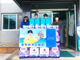 영탁하우스캠프 회원들이 지난 1일 녹전면행정복지센터를 방문하여 어려운 이웃을 위해 써달라며 화장지, 마스크 등 27만 원 상당의 생필품을 기부했다.