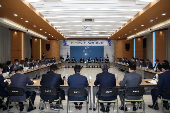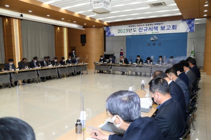 상주시는 중흥하는 미래상주 건설을 위해 지난 4월 5일, 시청 대회의실에서 강영석 상주시장 주재로 ‘2023년도 신규시책 보고회’를 개최했다.