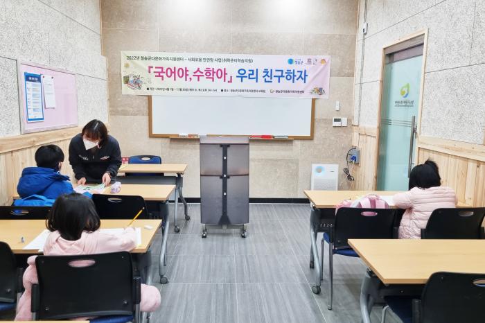이 사업은 『유치부(다문화가족지원센터 교육실)』, 『초등부(다문화가족지원센터 교육실)』, 『현동면 공부방(도평초등학교 도서실)』 3개반으로 11월 30일까지 운영되며,