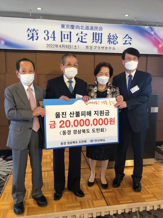 이철우 경북도지사는 “코로나19로 어려운 여건속에서도 도쿄도민회에에서 고향을 잊지 않고 소중한 정성을 모아 주신데 감사드리며, 산불피해로 고통받고 있는 울진군민에게 큰 힘이 될 것”이라고 말했다.(업무부서/