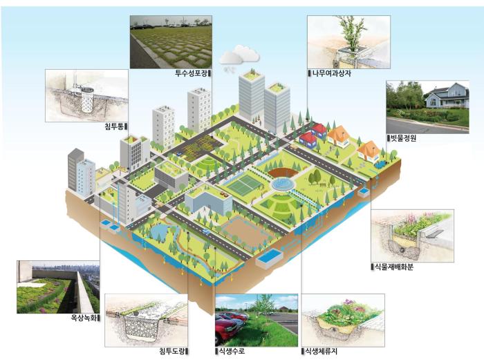 *LID(저영향개발, Low Impact Development) : 개발 지역 내 침투, 증발산, 저류 등의 과정을 재현할 수 있는 소규모 시설들을 분산 적용하여 강우유출수를 관리하는 방법