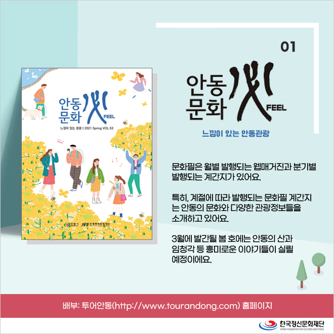 안동시 관계자는 “올해로 창간 15주년을 맞는 안동문화필이 안동의 대표 관광 잡지로서 최신 관광소식을 보다 쉽고 빠르게 접하고, 알찬 관광정보를 제공할 수 있도록 세심하게 제작하겠다”고 밝혔다.