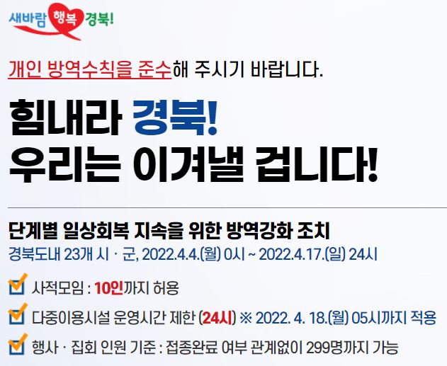 경상북도에서는 최근 1주일간 국내 6만6520명(해외유입 제외)이 발생해, 주간 일일평균 9502.9명이다.(업무부서/감염병관리과)