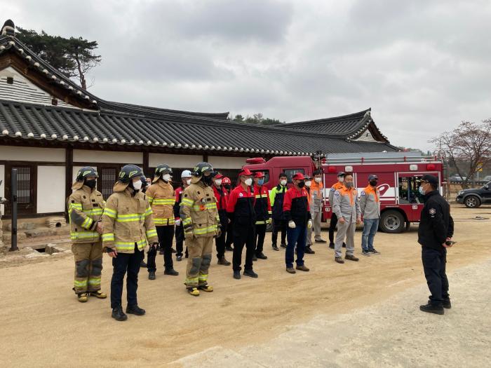 훈련상황은 낙동면에 소재한 양진당 목조건축물 내부에서 원인 미상의 화재가 발생하여 야산으로 불이 확대되어 산불이 발생하는 상황을 가정하여 진행되었다.