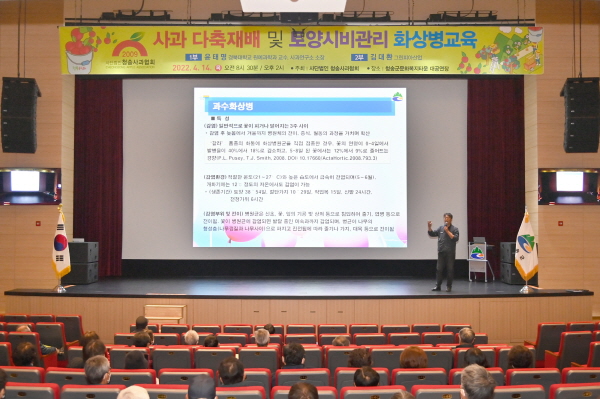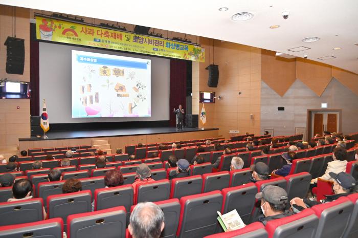 지역 내 사과 재배농가를 대상으로 한 이번 역량강화 교육은 1부에서 경북농민사관학교 등에서 농업생산성 향상을 위해 교육활동을 하고 있는 김대환 강사가 과원의 토양시비관리에 대한 주제로 교육을 하고, 2부에서는 경북대학교 사과연구소 소장이자 원예과학과 교수인 윤태명 강사가 사과재배시스템의 혁신을 위한 다축재배를 주제로 교육을 하고, 이어 3부에서는 청송군농업기술센터에서 화상병을 주제로 교육을 실시했다.