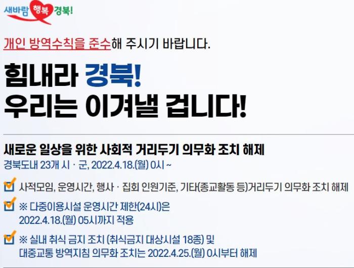 경상북도에서는 4월 15일(금) 23개 시·군(시 10, 군 13)에서 코로나19 확진자 국내감염 6152명, 국외감염 6명이 신규 발생했다.