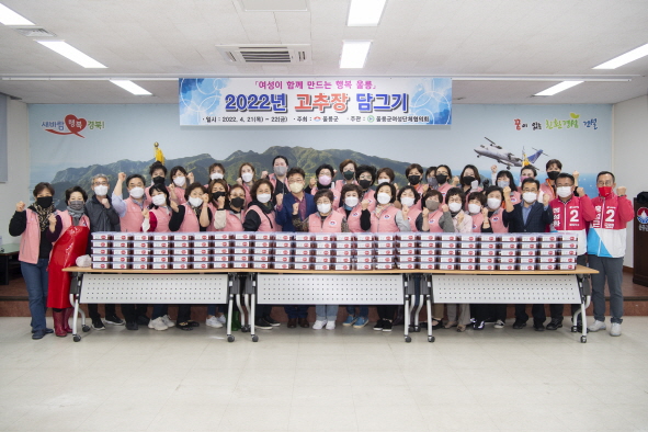 울릉군 여성단체협의회에서는 2022년 4월 21일~22일, 2일간 울릉한마음회관에서 ‘고추장담그기 나눔 행사’를 실시했다.